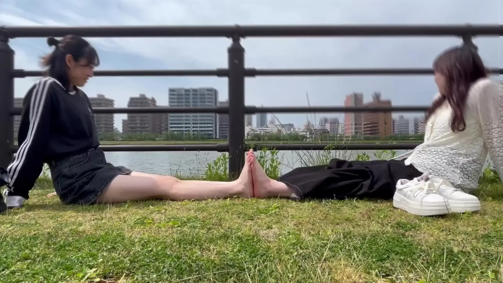 《街撮りNo.54 仲良し2人組》 【足裏合わせ】 次に足裏合わせも撮影できました! 足裏を見せ合うシーンは シュールさにふたりとも大爆笑でした笑 たしかにシュールですよね。。。笑 是非こちらもご購入お願いいたします🤲