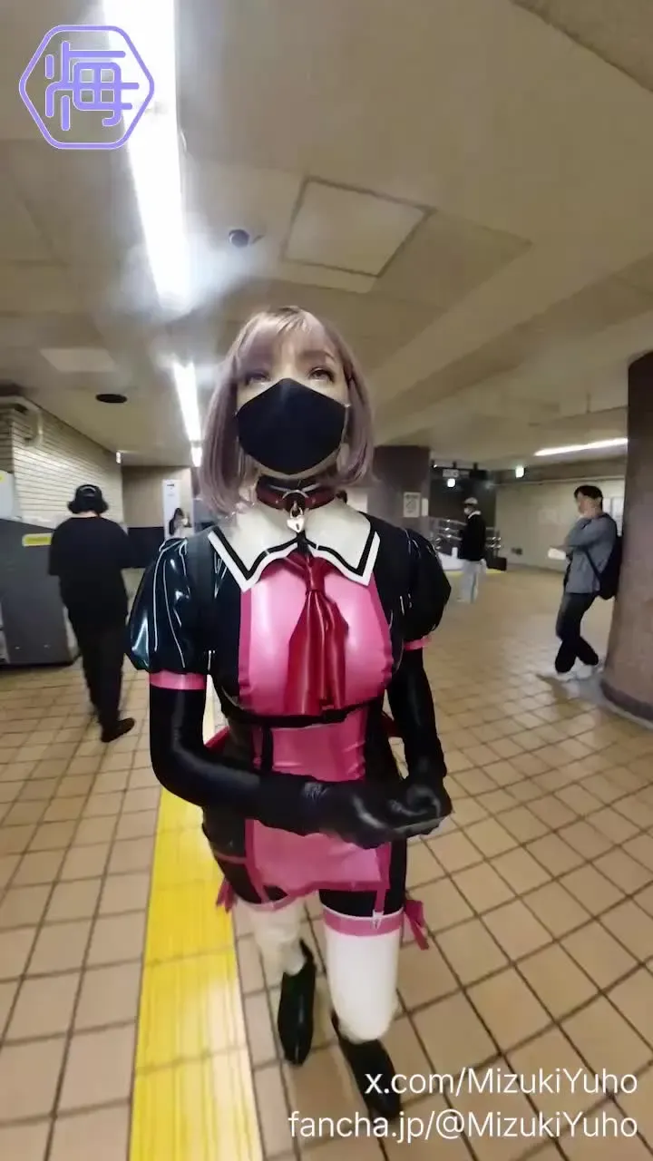 ラバー制服を着てコスプレイベントに参加したうみつきさんです。 [HokoCos] [フィメールマスク] [ラバースーツ] [屋外] [ソロ] [撮影] [ラバー制服] [イベント]