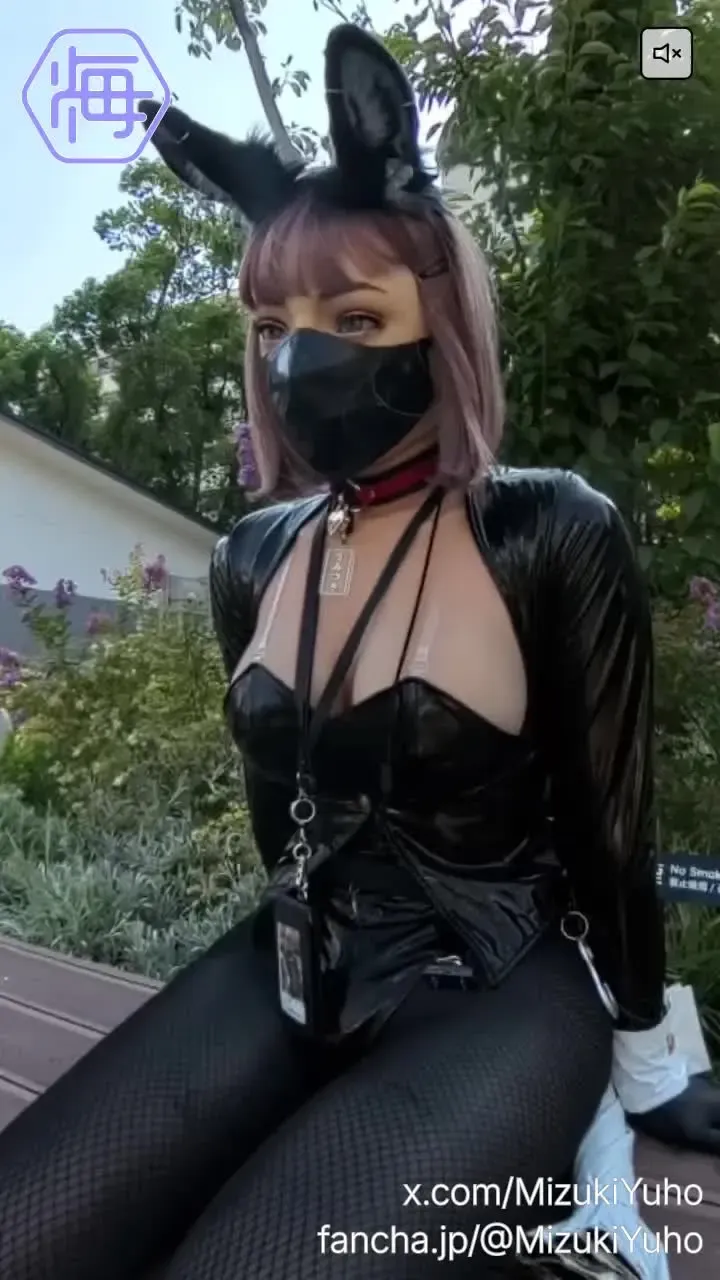 イベントでファンの方から撮影を頼まれてポーズを取っているうみつきさんです。 [2409_plan01-02] [フィメールマスク] [コスプレ] [屋外] [ソロ] [撮影] [バニースーツ] [イベント]