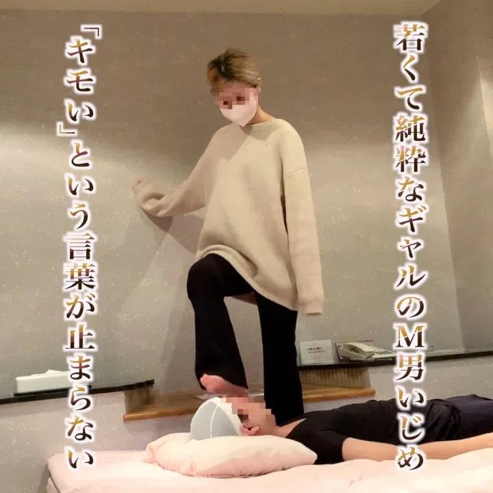 【若くて純粋なギャルのM男いじめ「キモい」という言葉が止まらない】 17作品目は、純粋ギャルに何度も「キモい」と言われてしまう屈辱です。 ギャル様は純粋が故に、M男に対してありのままの感情を言い放っていました。 M男の顔に全体重で踏みながら「きもいwもっと耐えろ」、 M男の顔の上でフードクラッシュし「もっとキモくなっちゃったーw」、 M男に靴の裏を舐めさせながら「これで興奮するとか…キモすぎ」などなど、 M男は屈辱を受け、痛みなどに耐え続けているのに終始「キモい」と言われ続けてしまいます… プレイ内容は以下の通りです。 ・顔踏み(素足、靴裏) ・足舐め(素足、靴裏) ・全体重顔踏み(素足) ・ロールケーキフードクラッシュ(素足) ・唾顔かけ(少し) ・靴裏舐めながらオナニー指示 自分のことを気持ち悪いと言われて興奮してしまう方におすすめです。 終盤には、「キモいってこと自分で自覚しろよ」と人格否定されますのでご注意下さい… *動画の転載、複製、転用は法律により罰せられます Unauthorized duplication os a violation of applicable laws. *本編フルテロップ、M男の余計な音声カットの編集済み *女性は成人です。 *女性の出演許可は得ていますが、プライバシー保護の観点から、雰囲気が分かるくらいのモザイク処理はさせていただいております。 *11分23秒