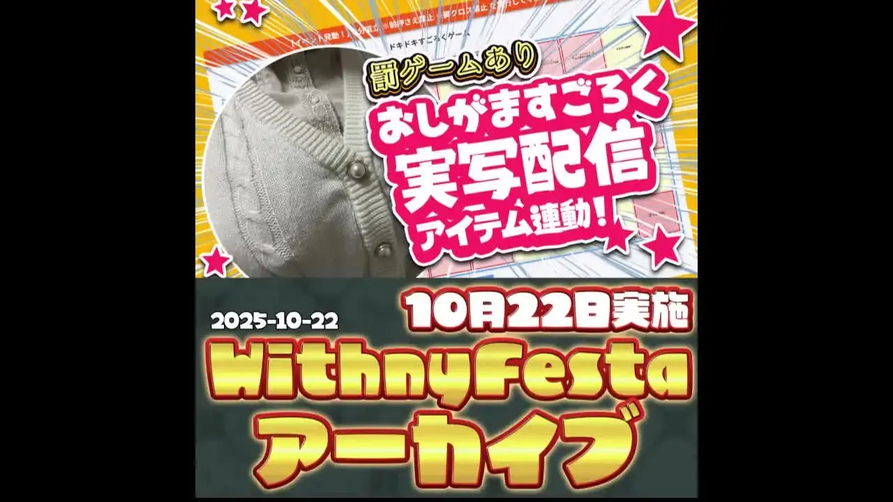 2025-10-22 🍒withnyアーカイブ(10月22日配信)🍒 実写で限界突破!? 絶叫必至のおしがますごろく耐久! まさかの実写企画…! リアルすごろくで、ドキドキの罰ゲーム耐久戦!?🎲💦 笑って、叫んで、我慢して!? 果たして最後まで耐えられるのか──! ------------------------------- 🍒withny Archive (October 22nd Broadcast)🍒 Breaking Boundaries in Live Action!? Scream-Inducing Endurance Game of Dice! An unexpected live-action project...! A heart-pounding endurance battle of penalty games with real dice!?🎲💦 Laugh, scream, endure!? Can they hold out until the very end──!