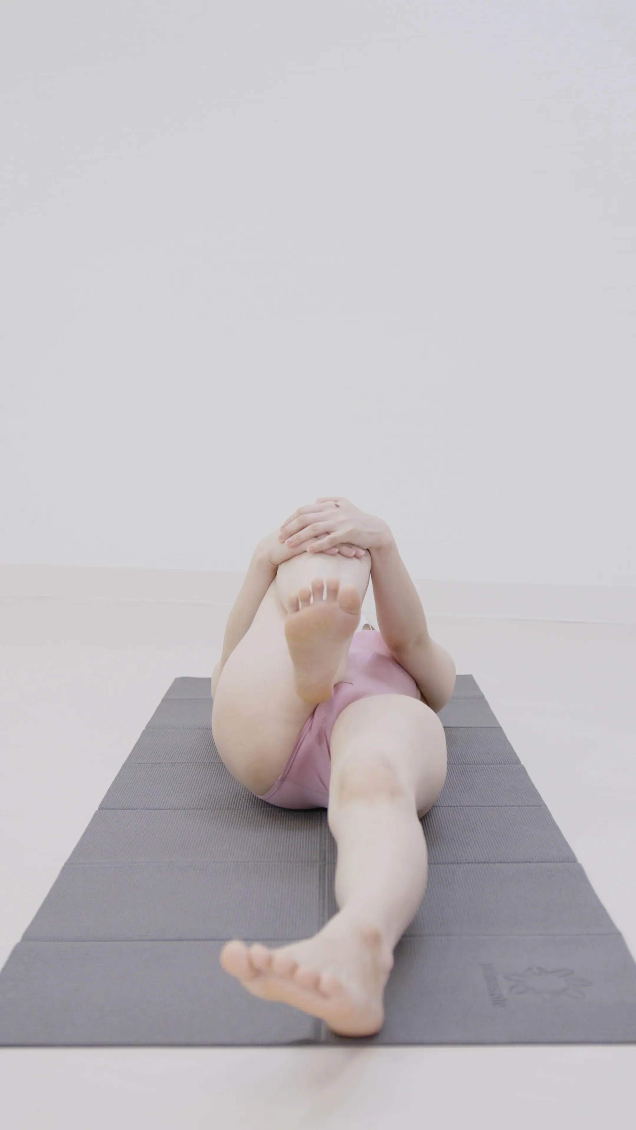 膝をしっかりと抱え込んでストレッチ♪😋💖