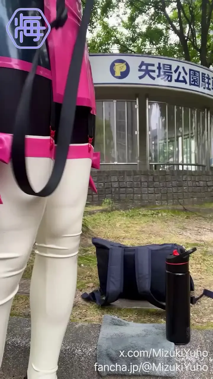 ラバー制服を着てコスプレイベントに参加したうみつきさんです。 [HokoCos] [フィメールマスク] [ラバースーツ] [屋外] [ソロ] [撮影] [ラバー制服] [イベント]