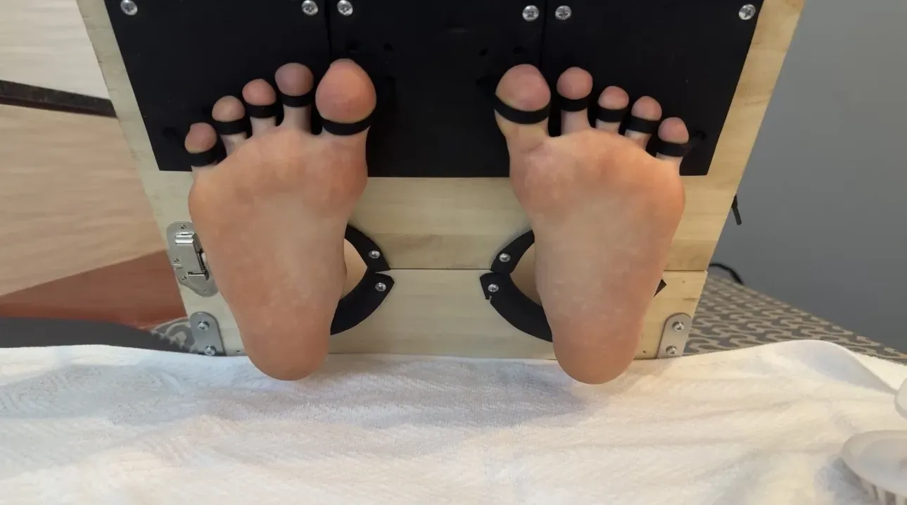 くすぐりの撮影は初めてという華奢な同人モデルさんの足の裏くすぐり 華奢なため皮膚が薄く、ブラシでのくすぐりは痛いとのことで中断。 しかし、皮膚が薄いため指の腹でくすぐるだけで笑ってしまうほど…。 ※モデルさんは終始マスクを着用しています。