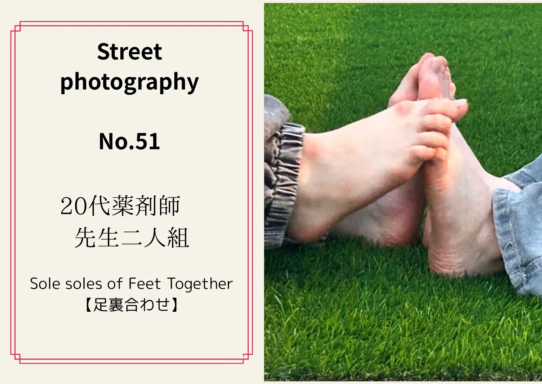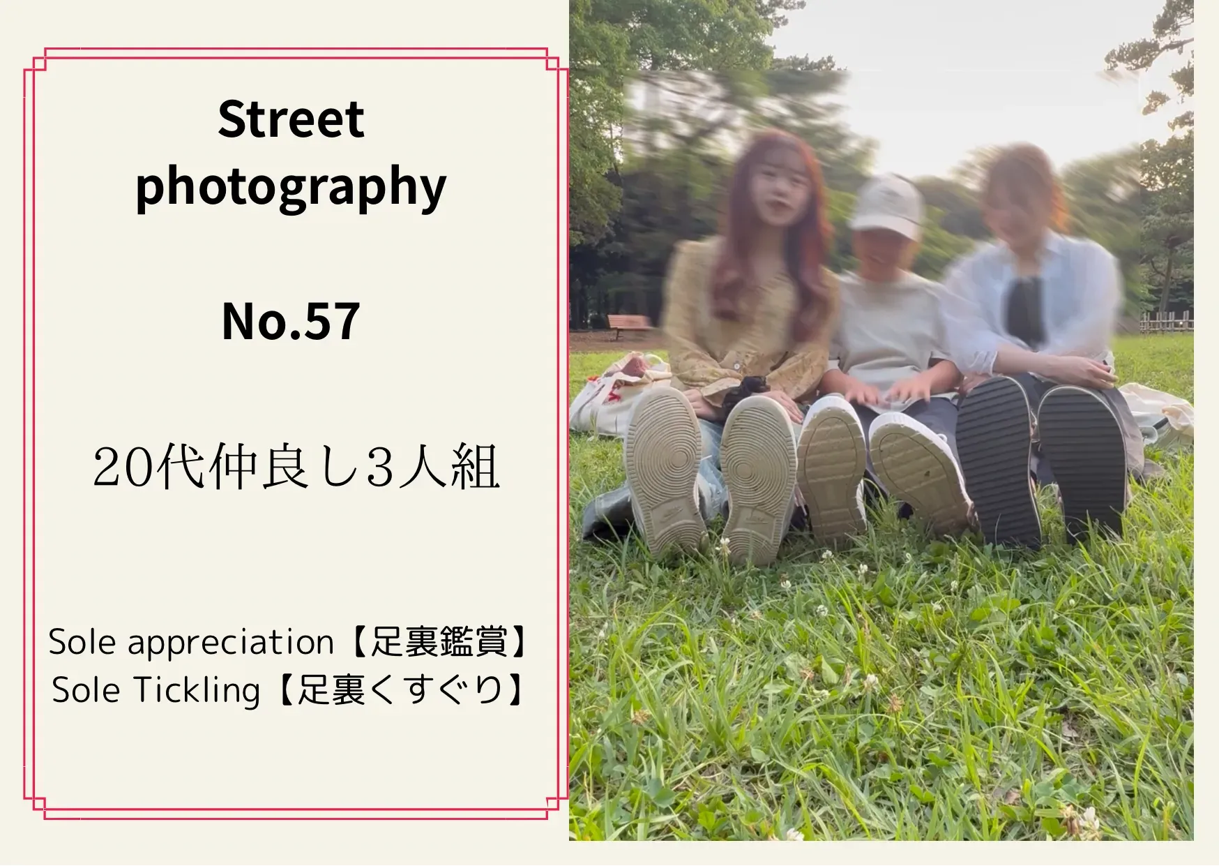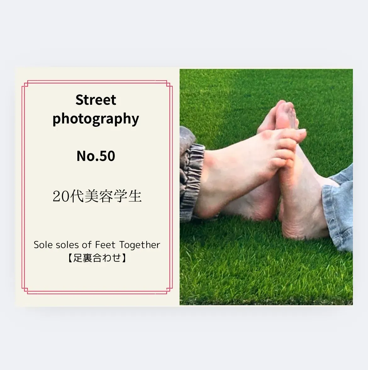 《街撮りNo.54 仲良し2人組》 【足裏合わせ】 次に足裏合わせも撮影できました! 足裏を見せ合うシーンは シュールさにふたりとも大爆笑でした笑 たしかにシュールですよね。。。笑 是非こちらもご購入お願いいたします🤲