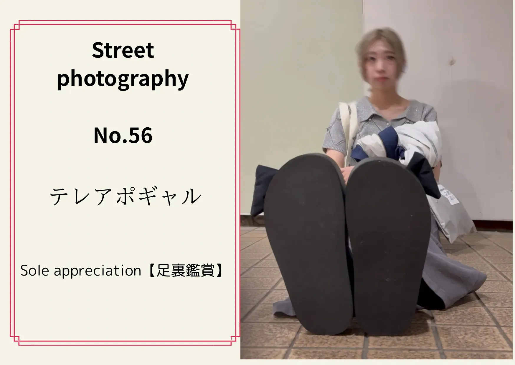 《街撮りNo.56 テレアポギャル》 【足裏鑑賞】 今回のモデルさんは私がヘアカットをしたあと、たまにいく駅の所で撮影したモデルさんです^ ^ 見た目はギャル!って感じですが おとなしめとギャップがあり、 足裏はわりと主張強めかなと思います! くすぐりもしたんですが、途中(3分半過ぎで) 動画が止まってしまい撮れてなかったです泣 データ管理をしっかりとしていくと誓いました。笑 なんで今回は777ptと激安で販売します!!! よろしければご購入お願い致します✨