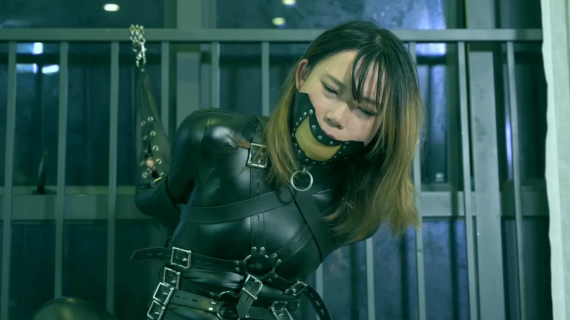 【G●NTZなマンション内に囚われた美女 Vol.2】どうやら飼い主であるアノニマスマスクの男は、BDSMマニアのようです。まるで新しく入手した口枷の具合を確かめるかのように、女の子に装着していく男。完璧に固定されているので、彼女に逃げるチャンスは無さそうです。