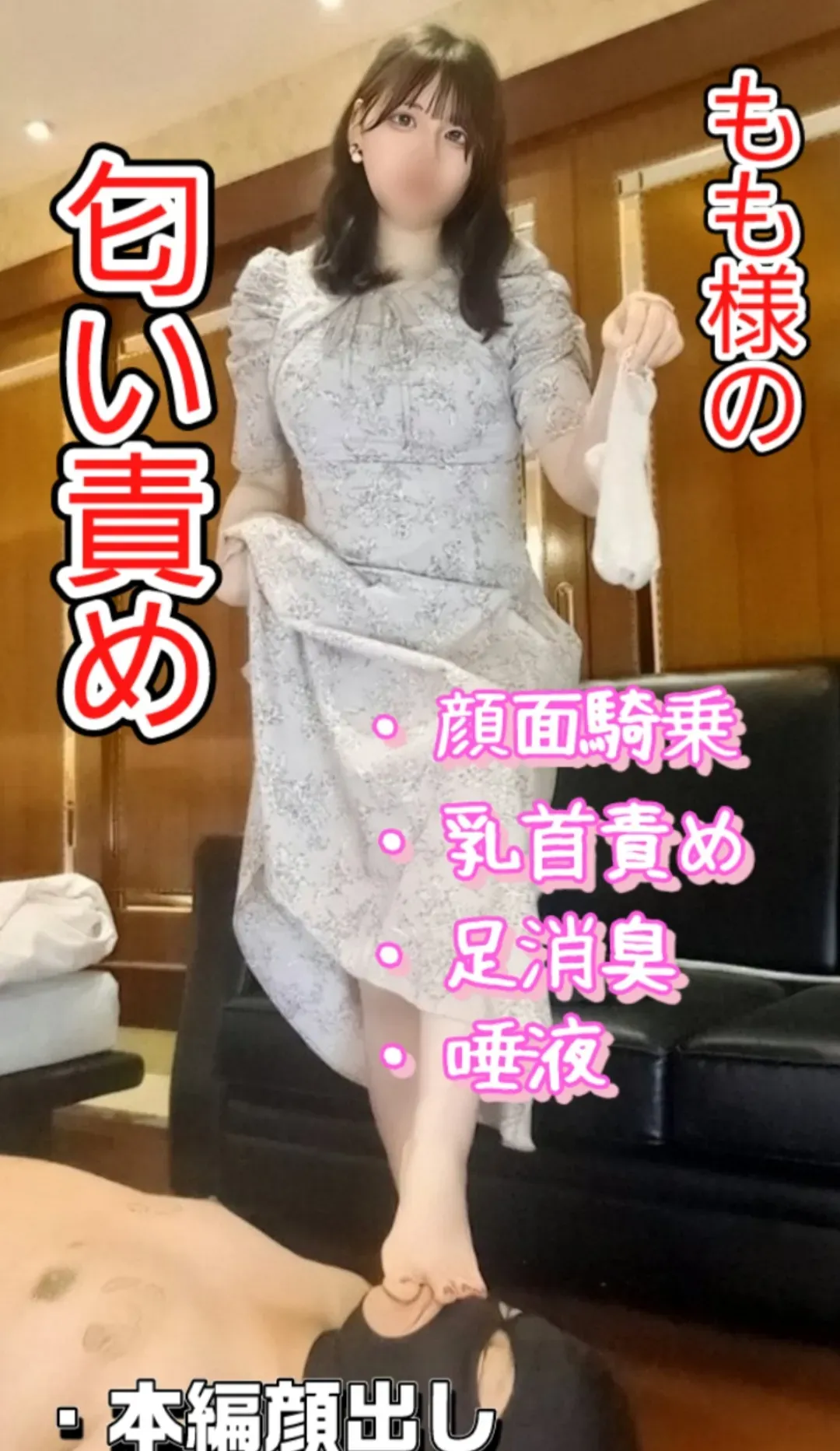 華丼もも様の匂い責めです。 ※本編顔出し 映像作品初出演のもも様が、圧倒的な魅力でM男を徹底的に責め立てる。 礼儀を叩き込みながら、蒸れた靴下の強烈な匂いを嗅がせ、消臭後は素足でさらに追い込む匂い責め。 顔面騎乗で容赦なく圧迫し、唾液を顔に滴らし、乳首責めで弄ぶもも様の楽しげな姿は必見! 妖艶かつ大胆な彼女の魅力に引き込まれる、刺激的なシーンをぜひご堪能ください!