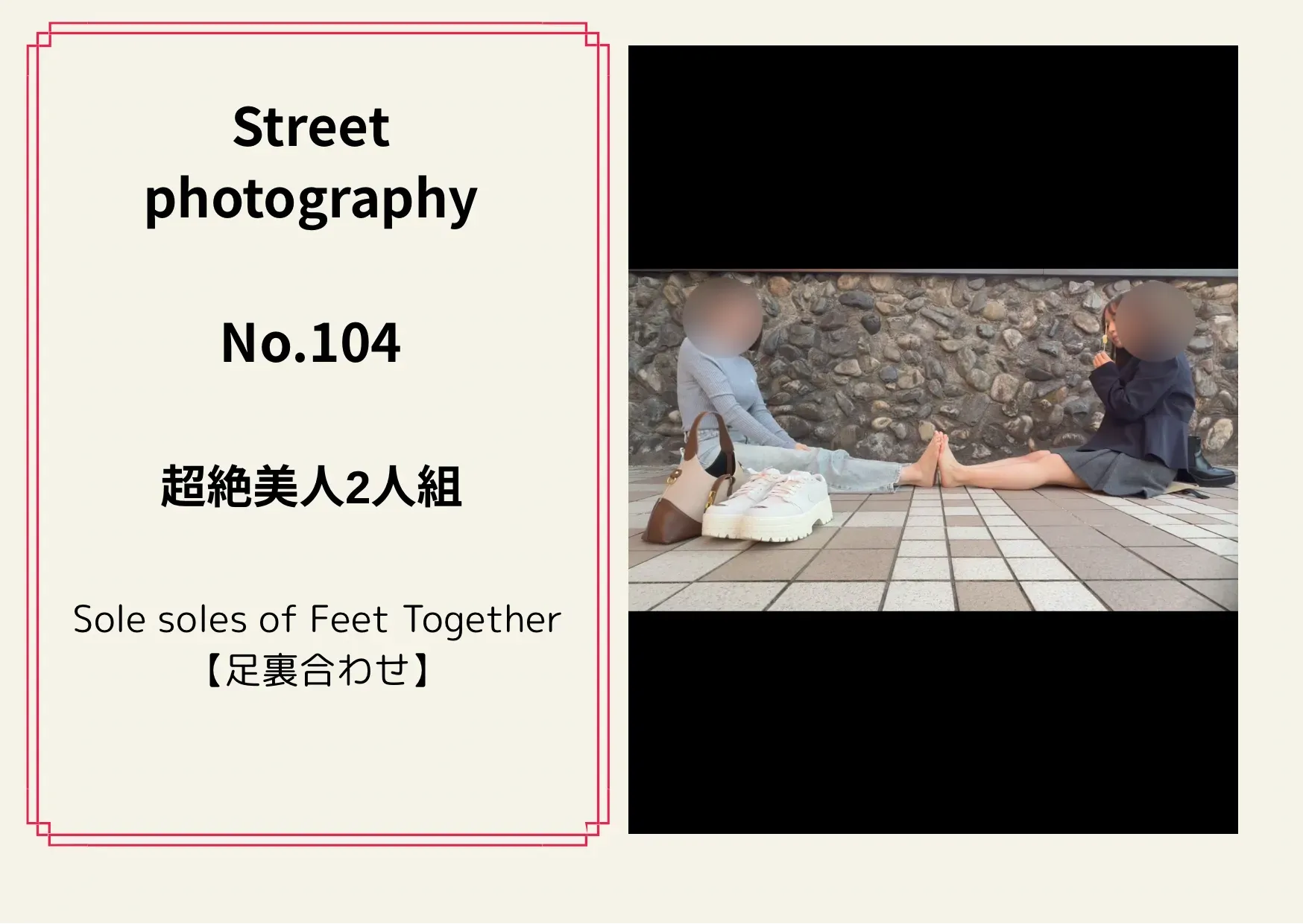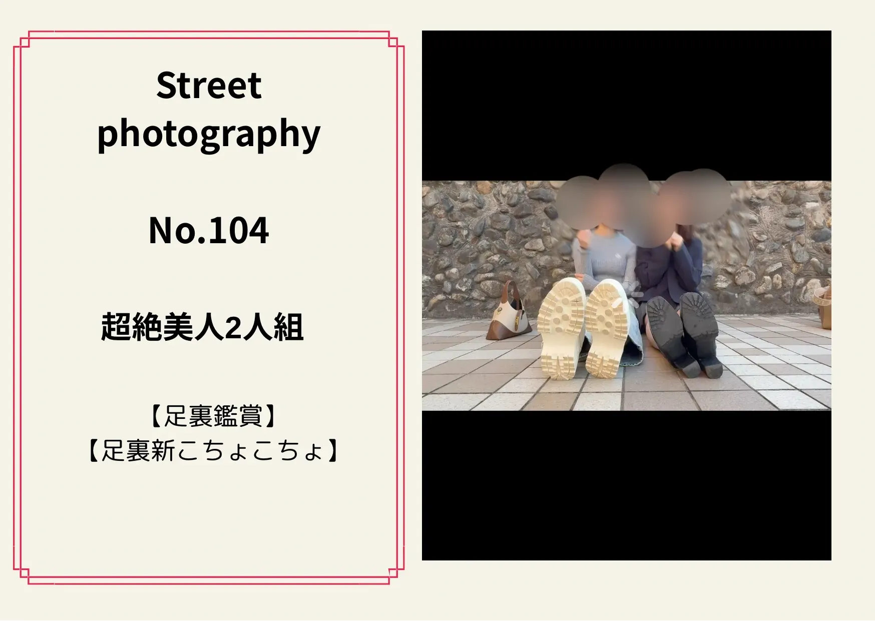 《 街撮りNo.104 超絶美人2人組 》 【足裏鑑賞】 【足裏新こちょこちょ】 約14分 3000pt 撮影ご協力 いただき誠にありがとう ございました😍 きたーーー✨・:*+.\(( °ω° ))/.:+ 桜にまぎれてこんな超絶美人の 足裏撮影をしてきました╰(*´︶`*)╯♡ 足裏くすぐりも収録されてます^ ^ しかもまたまた私の個人的な感想に なりますが、左の子は私の今指導している後輩に 似てて めちゃくちゃ可愛いんです! これを超える様な作品がとれるよう 日々努力していきます!!!!! 是非ご購入お願いします🤲