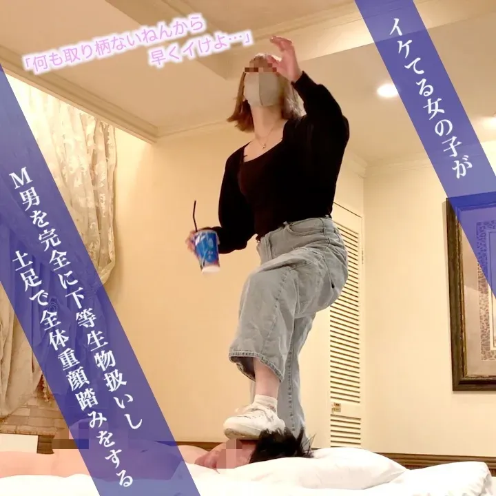 【S級スレンダー美女がM男に罵詈雑言を浴びせながら何度も何度も全体重で顔を踏みつける】 エムー大陸です。 女性に顔を踏まれるという理解されない癖を、肯定するために活動を始めました。 今回は、S級美女がM男の顔に何度何度も踏み乗ります。 M男に踏み潰したぶどうを全て飲ませ、屈辱の全てを与えたS級美女。 しかしそれで終わらず、彼女は人に言ってはいけないレベルの罵詈雑言をM男に浴びせます。 「可哀想な人間…(笑)」「◯ね!」「お前何で生きてるん?」など、容赦ない言葉を投げつけられるも、M男は彼女の足裏を舐め続けることしかできません。 そして何度も何度も顔を全体重で踏まれ、彼女の地面となり、物理的にも存在的にも彼女の『下』になる他ありませんでした… プレイ内容は以下の通りです。 ・顔踏み(素足、靴) ・足舐め(素足、靴) ・顔に唾かけ ・全体重顔踏み ・ぶどうのゴミ袋を顔にぶっかける 心が折れてしまうほど尊厳を汚され、全体重で顔を踏まれまくります。 格差が具現化されすぎて、S級美女とM男が同じ人間には見えなくなりました… *動画の転載、複製、転用は法律により罰せられます Unauthorized duplication os a violation of applicable laws. *本編フルテロップ、M男の余計な音声カットの編集済み *女性は成人です。 *女性の出演許可は得ていますが、プライバシー保護の観点から、雰囲気が分かるくらいのモザイク処理はさせていただいております。(タトゥー隠しのため、ハートマークを用いて編集させていただいています) *12分14秒