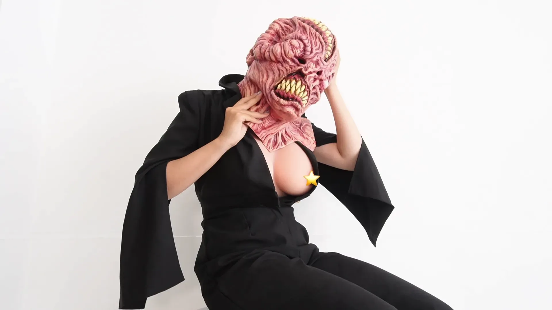 フィメールマスクを被った状態でのトークシーンと、重ね着したマスクのマスクオフシーンがご覧いただけます。