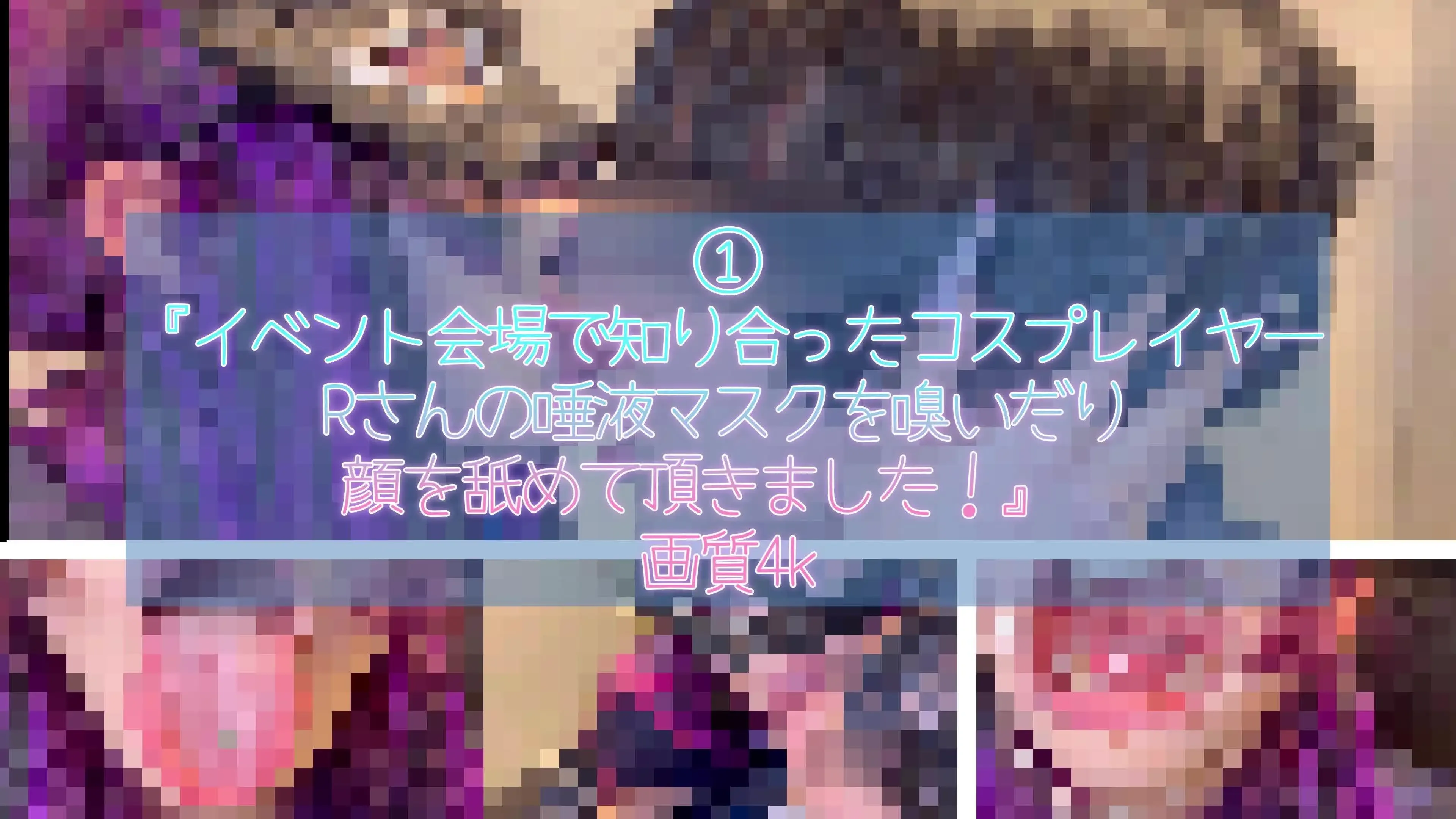 ①『イベント会場で知り合ったコスプレイヤーRさんの唾液マスクを嗅いだり顔を舐めて頂きました!』 画質4k こちらのRさんは以前コスプレ会場にて知り合いました! 僕はアニメも好きなんですがコスプレイヤーさんも可愛い方が多いので目の保養をかねて撮影しに行ってました! そこでアカウントを教えてもらい後日連絡を重ねて認知して頂きました! 色々話す仲にもなっていたのでこの活動の事を相談してみたら仮面着けたりして顔わからないようにすれば出れますとの事で撮影を引き受けて頂きました! お礼は推し活やコスプレ費用に使用するそうです!笑 舌ピや舌苔好きな方とこの時は矯正器具をつけていましたので矯正フェチの方がいましたら見れますよ! 主な動画内容『全力舌出し(舌ピあり)、ベロ回し、開口器着用(舌出し)、唾液たっぷり顔舐め、顔を固定しながら鼻舐め、唾吐き、鼻にベロを押し当てて吸引、唾液飲み、唾液スプレー、唾液マスク着用』 モデルさん→仮面着用 唾液奴隷→目元モザイク